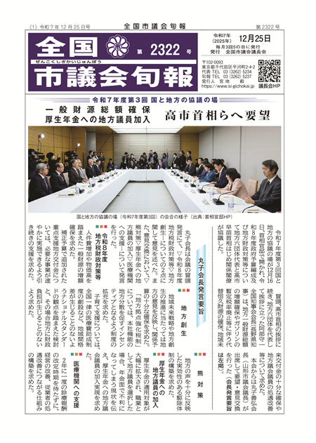 「国と地方の協議の場(令和7年度第3回)」(令和7年12月16日)に出席する丸子善弘会長(山形市議会議長)(地方分権改革推進本部提供) ギャラリーへ >>