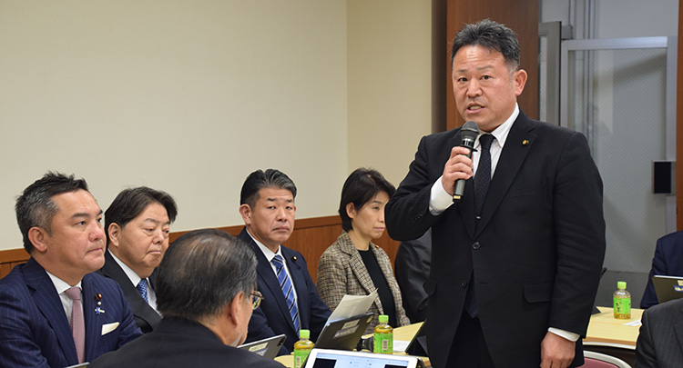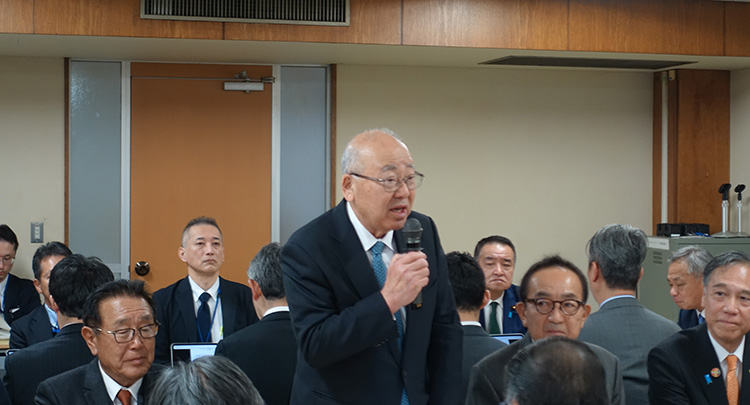 自由民主党総務部会合同会議(12月23日)で地方六団体を代表して挨拶をする齊藤誠之副会長(那須塩原市議会議長) ギャラリーへ >>