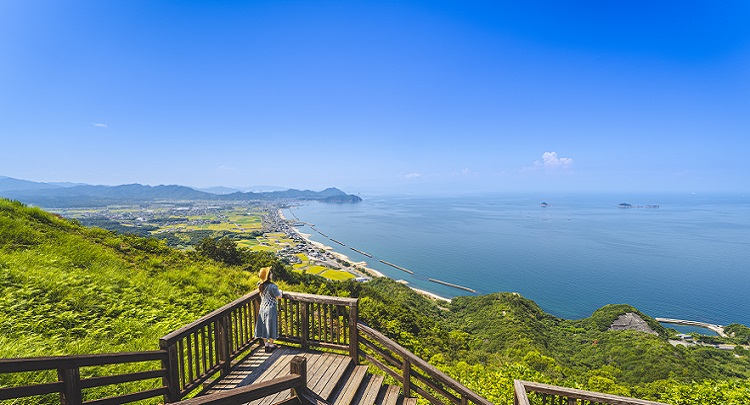 パラグライダーのフライトエリアとして知られる大坂峠。瀬戸内海を一望できます(東かがわ市提供)。