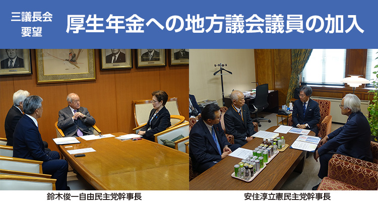 厚生年金への地方議会議員の加入について、三議長会による鈴木自民党幹事長(令和7年10月22日)、安住立憲民主党幹事長(令和7年10月29日)への要望の模様
