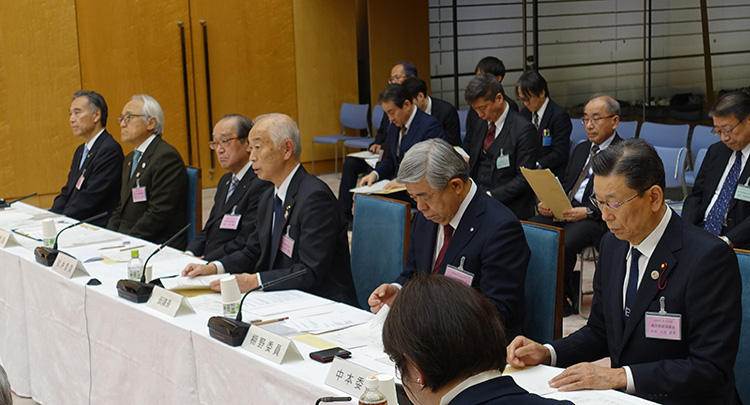 自民党 総務部会・地方行政調査会・地方議会の課題に関するPT合同会議で発言する坊 恭寿会長(神戸市会議長)