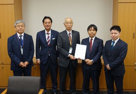 チームみらいの高山幹事長(右から2人目)、古川政調会長(右から1人目)へ要望