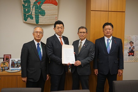 下村博文自由民主党政務調査会長(右から2人目)に要望する三議長会会長