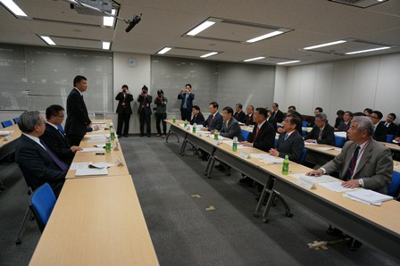 11月27日(水)、本会の佐藤祐文会長(横浜市議会議長)をはじめとする地方六団体の代表者は、「総務大臣・地方六団体会合」に出席し、新藤総務大臣、関口総務副大臣、伊藤総務大臣政務官と平成26年度地方財政対策について意見交換を行いました。