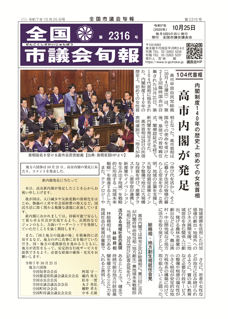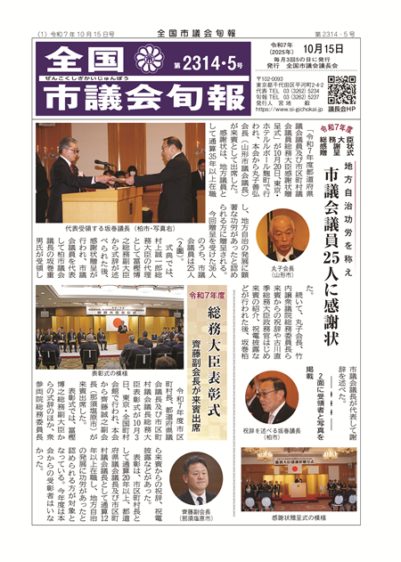 全国市議会旬報第2314・5号(10月15日号)を発行