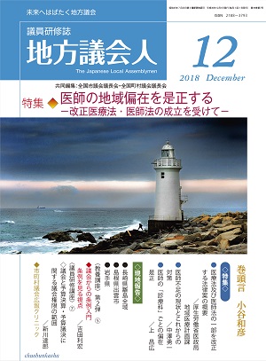 本会と全国町村議会議長会が共同編集している、地方議会議員のための専門研修誌である月刊『地方議会人』の12月号が発売されました。特集は「医師の地域偏在を是正する―改正医療法・医師法の成立を受けて―」です。