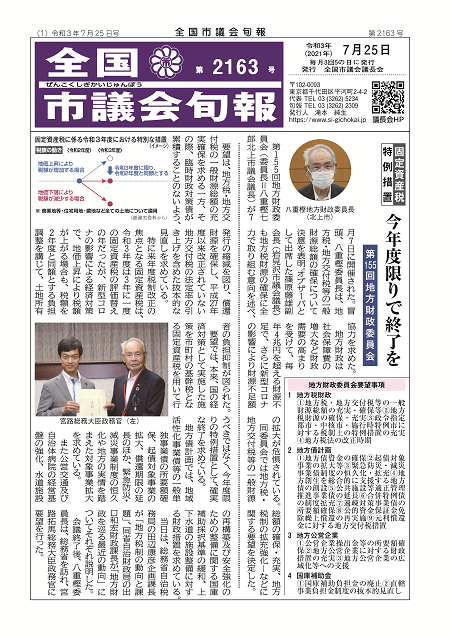 令和3年7月15日(木)、全国市議会旬報2162号(7月15日号)を発行します。