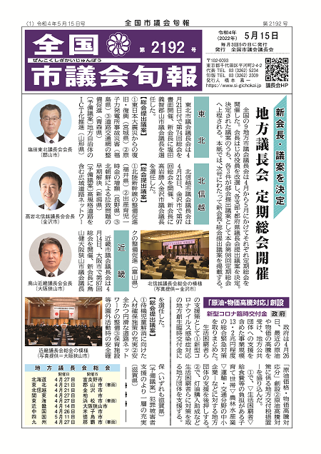 令和4年5月15日(日)、全国市議会旬報第2192号(5月15日号)を発行します。