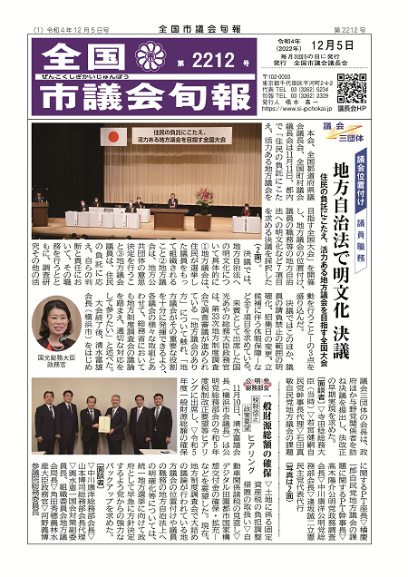 令和4年12月5日(月)、全国市議会旬報第2212号(12月5日号)を発行します。