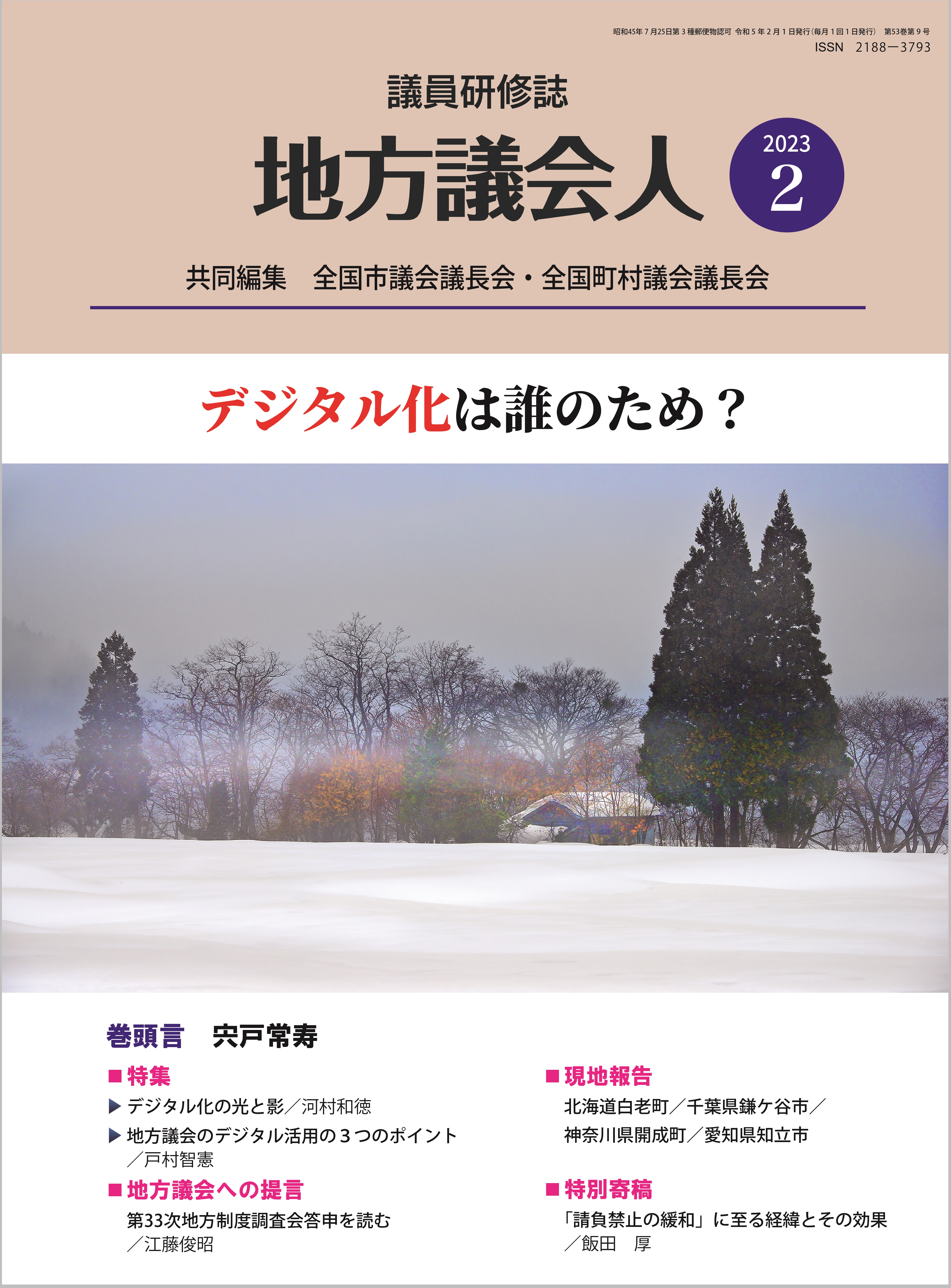 本会と全国町村議会議長会が共同編集している、地方議会議員のための専門研修誌である月刊『地方議会人』の2月号が発売されました。特集は「デジタル化は誰のため?」です。