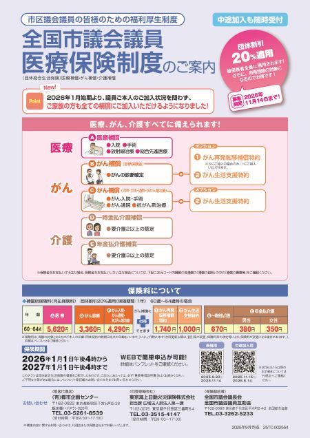 令和7年9月22日全国市議会議員医療保険制度(団体総合生活保険・疾病やケガの保険)のご案内について