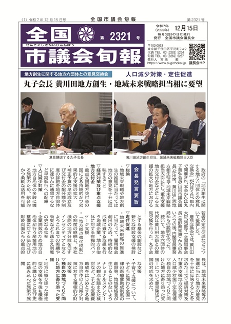 令和7年12月15日全国市議会旬報第2321号(12月15日号)を発行