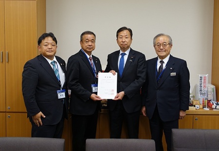 鈴木俊一自由民主党幹事長(右から2人目)に要望する正副委員長