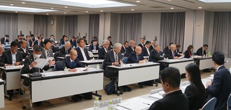 今岡芳徳会長(福山市議会議長)による開会の挨拶に続いて、一般事務報告、令和6年度会計決算について了承したのち、高速道路建設・整備促進等に関する要望書(案)を原案のとおり決定するとともに、今後の会議・要望活動日程(案)等について協議しました。